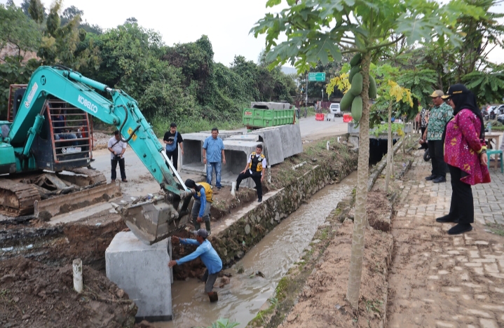 Pemasangan box culvert ini dipantau langsung oleh Walikota Bandar Lampung, Eva Dwiana, pada Jumat (11/4/2025).