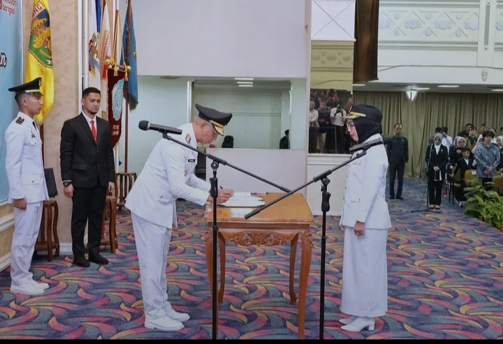 BANDARLAMPUNG (MI-NET) — Gubernur Lampung, Rahmat Mirzani Djausal melantik dan mengambil sumpah jabatan Ayu Asalasiyah sebagai Bupati Way Kanan, Provinsi Lampung, bertempat di Balai Keratun Lantai 3, Kantor Gubernur Lampung, Selasa (10/06/2025).