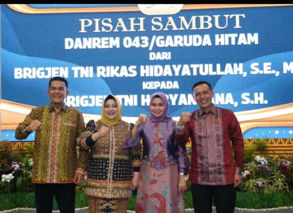 Lampung (MI-NET) – Pemerintah Provinsi Lampung menggelar malam pisah sambut Komandan Korem 043/Garuda Hitam (Gatam) dari pejabat lama Brigjen TNI Rikas Hidayatullah, S.E., M.M., kepada pejabat baru Brigjen TNI Haryantana, S.H.