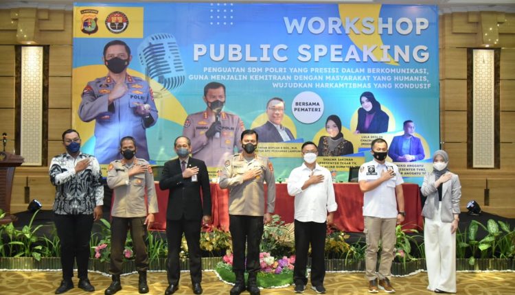 Bandar Lampung – Polda Lampung mengadakan workshop public speaking untuk penguatan sumber daya manusia anggota Polri agar abdi Bhayangkara memiliki kemampuan berkomunikasi dan menghindari kesalahpahaman dalam penanganan suatu masalah di tengah masyarakat.