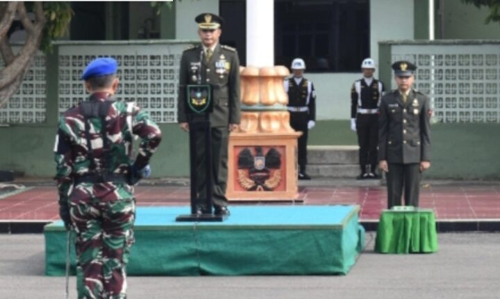 Bertindak sebagai Inspektur Upacara (Irup) Kasiops Kasrem 043/Gatam Kolonel Inf Gede Setiawan dan Komandan Upacara (Danup) Kapten Cpm Kurinci.