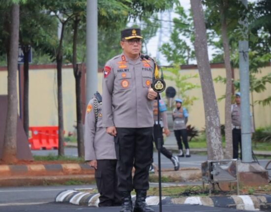 Lampung Selatan (Mi-Net) – Kapolda Lampung Irjen Pol Helmy Santika, memimpin apel pagi di halaman Mapolda Lampung, Senin (08/01/2024).
