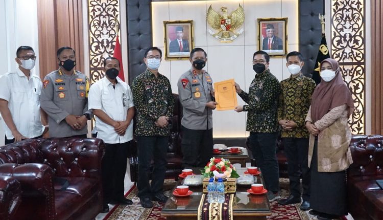 BANDAR LAMPUNG (MIN-SMSI) – Kapolda Lampung Irjen Pol Hendro Sugiatno terima audensi Ketua KPU Provinsi Lampung, Erwan Bustami di mapolda setempat, Rabu (22/6/2022).
