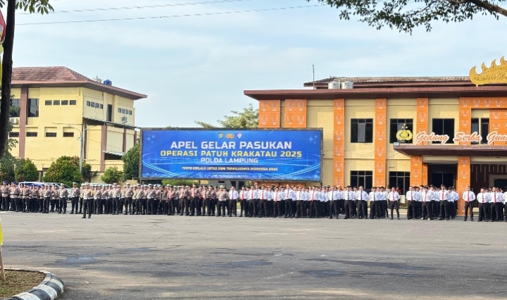 Lampung (MI-NET) – Polda Lampung menggelar Apel Pasukan Operasi Patuh Krakatau 2025 secara serentak di seluruh Indonesia, sebagai bentuk komitmen Polri dalam menekan angka pelanggaran dan kecelakaan lalu lintas, pada Senin(14/7/25)