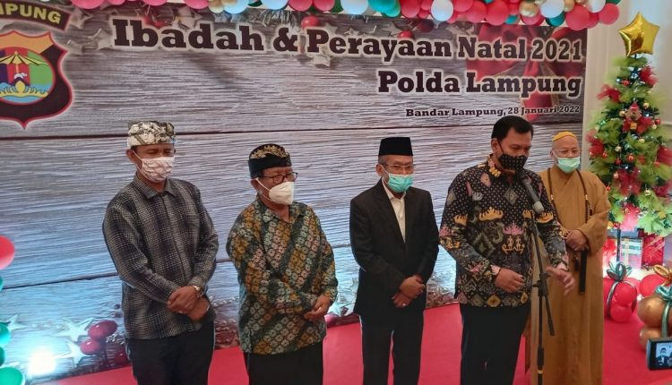 Bandar Lampung (MIN-SMSI) – Polda Lampung menggelar perayaan Natal 2021 bertema “Kasih Persaudaraan Tulus Ikhlas Dalam Menjalankan Tugas Polri Yang Presisi”, Jum’at, (28/01/2022) malam.