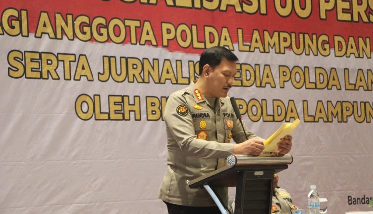 Bandar Lampung (MIN-SMSI) – Kapolda Lampung Irjen Pol Akhmad Wiyagus yang diwakili oleh Kepala bidang Humas Polda Lampung Kombes Pol Zahwani Pandra Arsyad membuka acara sosialisasi UU No 40/1999 tentang Pers bagi anggota Polda Lampung dan jajaran serta jurnalis media Polda Lampung oleh Bidang hukum Polda Lampung, Rabu tanggal 26 Oktober 2022.