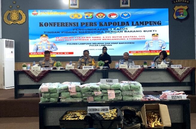 Bandar Lampung (MIN) — Kepolisian Daerah Lampung melalui Direktorat Reserse Narkoba bersama Satresnarkoba Polres Lampung Selatan dan Polsek KSKP Bakauheni berhasil mengungkap jaringan peredaran narkotika lintas Provinsi dengan barang bukti dalam jumlah besar.
