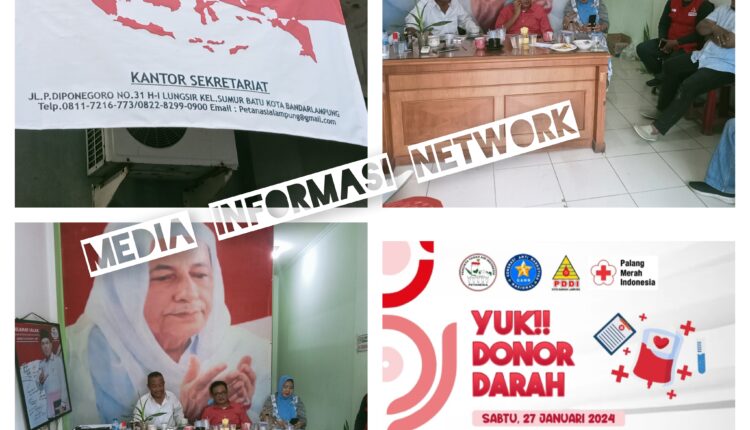 Mi-Net.com – Dewan Pimpinan Wilayah (DPW) Pecinta Tanah Air Indonesia (Petanesia) Provinsi Lampung bekerjasama dengan Generasi Anti Narkotika Nasional (GANN) Provinsi Lampung, PDDI dan Palang Merah Indonesia (PMI) menggelar Rapat Pemantapan acara Bhakti Sosial (Baksos) donor darah sekaligus peresmian kantor Komte Wartawan Reformasi Indonesia (KWRI) di sekretariat Petanesia Provinsi Lampung Jl. Diponegoro Kelurahan Sumur Batu Kecamatan Teluk Betung Utara Kota Bandar Lampung, Rabu (24/01/2024).