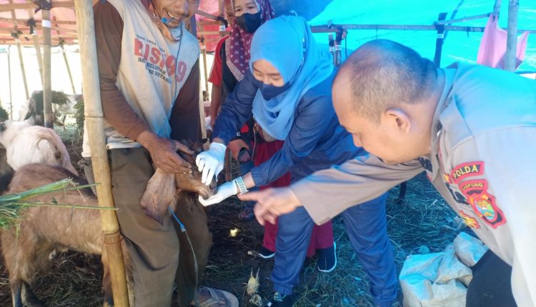 Satgas Banops Aman Nusa II Polda Lampung, Dampingi Tim Kesehatan, Dalam Rangka Vaksinasi PMK Hewan Ternak