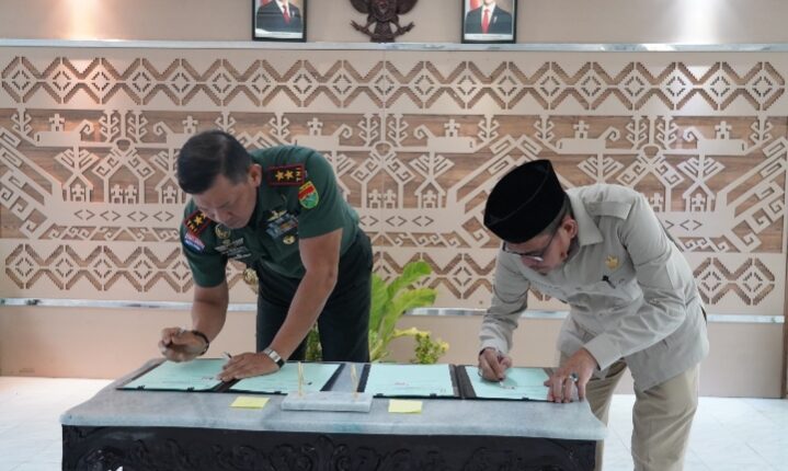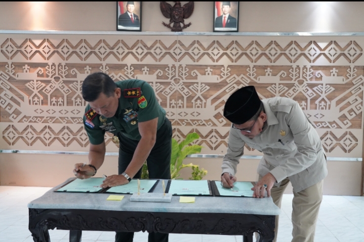 Bandar Lampung (MIN) – Bertempat di kantor PTPN Regional 7 Bandar Lampung, Pangdam XXI/Radin Inten Mayjen TNI Kristomei Sianturi, S.Sos., M.Si., (Han) melaksanakan penandatanganan Nota Kesepahaman (MoU) antara PTPN I Regional 7 dengan Kodam XXI/Raden Inten, Kamis (8/1/ 2026).