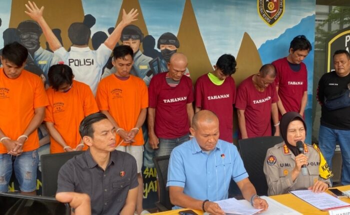 “Dari informasi ini, kami melakukan upaya penindakan terhadap aksi pemerasan tersebut dan tim Tekab 308 mengamankan 9 tersangka di Rumah Makan Obara.dan 4 tersangka di Pos PT JOB,” ungkap Umi.