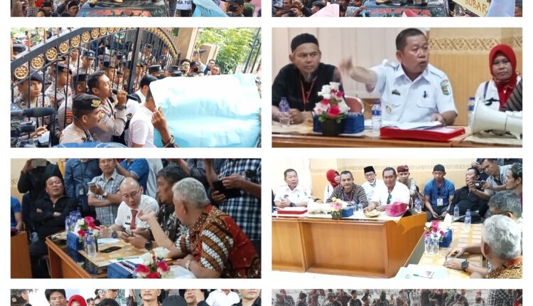 Bandar Lampung (MiN) – Ribuan Masyarakat Pesawaran yang berada di wilayah Kecamatan Gedong Tataan menggelar Aksi Damai di Kantor Wilayah BPN/ATR Provinsi Lampung Jalan Dokter Warsito No.5, Talang, Kecamatan Telukbetung Selatan, Kota Bandar Lampung, Kamis (15/06/2023).