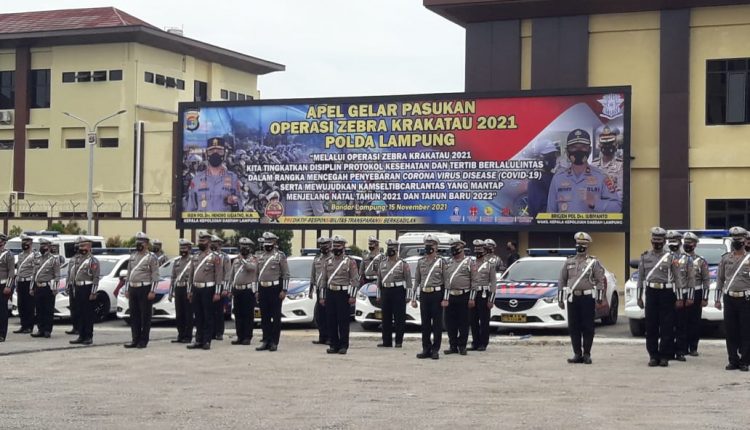 Bandar Lampung (MIN) – Polda Lampung melaksanakan Apel Gelar Pasukan Operasi Zebra Krakatau 2021 yang dipimpin oleh Kapolda Lampung Irjen Hendro Sugiatno di Lapangan Mapolda Lampung Itera, Bandarlampung, pada Senin (15/11/2021) pagi.