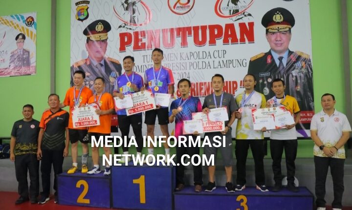 Bandar Lampung – Turnamen Kapolda Cup Badminton Presisi Polda Lampung 2024 resmi berakhir dan ditutup. Tim Polda Lampung Presisi berhasil keluar menjadi Juara 1 kategori Beregu Instansi.