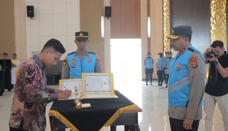 Bandar Lampung (MiN) – Wakapolda Lampung Pimpin pembacaan Sumpah dan Penandatanganan Pakta Integritas penerimaan Polri untuk Sekolah Inspektur Polisi Sumber Sarjana (SIPSS) T.A 2023. Pembacaan sumpah Panitia, Calon siswa serta orang tua wali tersebut dilangsungkan di gedung serba guna Presisi Polda Lampung, Senin (30/1/2023).