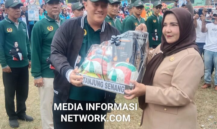 BANDAR LAMPUNG — Walikota Bandar Lampung, Hj. Eva Dwiana membuka Pekan Olahraga Kecamatan (Porcam) dan sekaligus melantik Pengurus Olahraga Kecamatan (POK) Tanjung Senang di Lapangan ATR Tanjung Senang Kota Bandar Lampung, Jum’at Sore (16/08/2024).