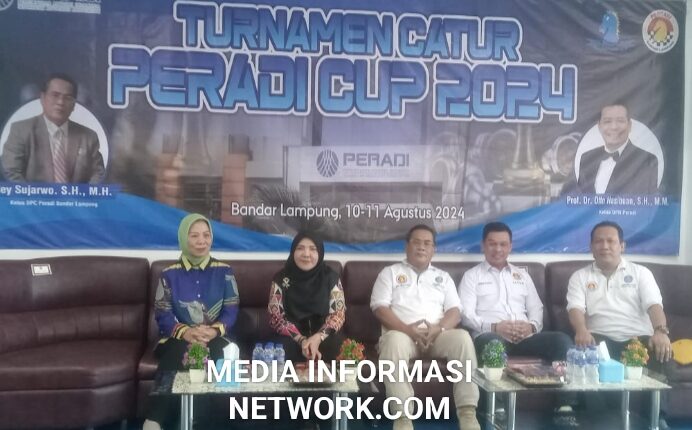 BANDAR LAMPUNG — Walikota Bandar Lampung Hj. Eva Dwiana hadiri pembukaan Open Turnamen Catur PERADI CUP 2024 di kantor DPC PERADI Kota Bandar Lampung, Sabtu pagi (10/08/2024).
