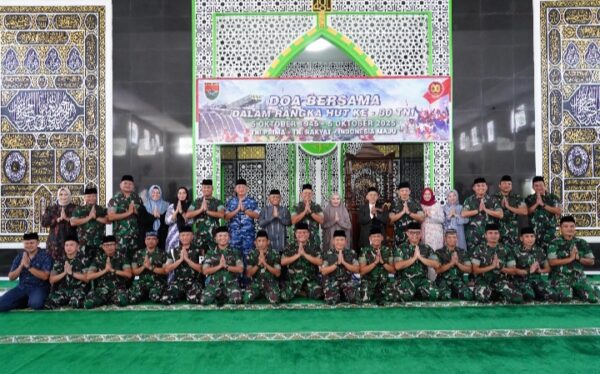 Kehadiran unsur pimpinan dan prajurit TNI AD, TNI AL, dan TNI AU menambah kekhidmatan acara yang mencerminkan soliditas, kebersamaan, serta mempererat tali silaturahmi antar prajurit lintas matra. Doa bersama ini juga menjadi wujud rasa syukur atas perjalanan panjang TNI dalam menjaga kedaulatan dan keutuhan Negara Kesatuan Republik Indonesia (NKRI). (Red).