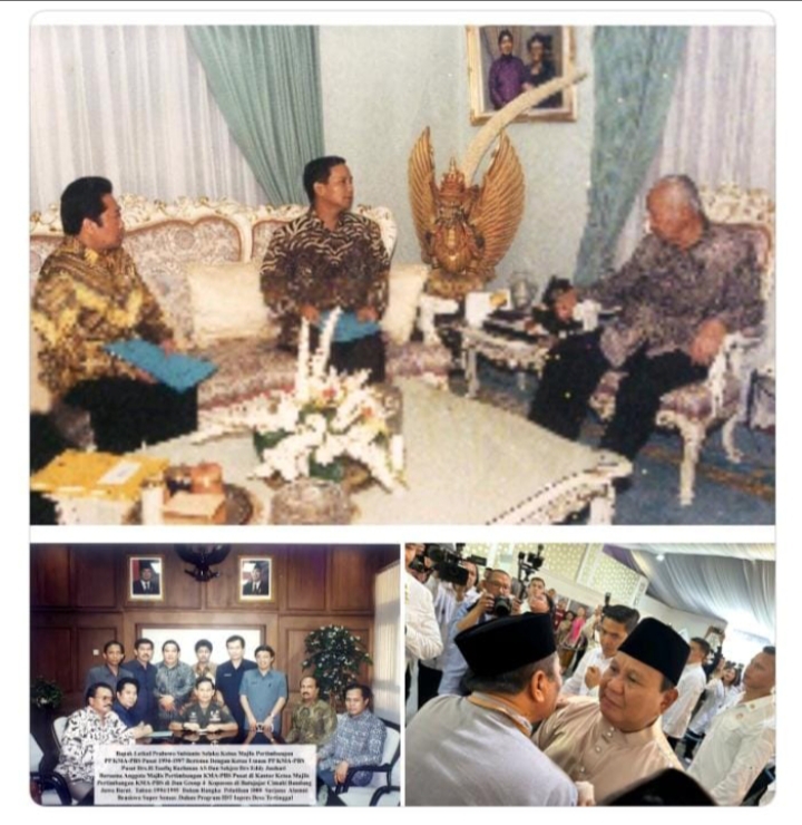 Jakarta (MI-NET) – Beredar di Sosmed dan media online foto masa muda Presiden RI Ke-8 Prabowo Subianto Tahun 1994, saat Jadi Ketua Majelis Pertimbangan Pengurus Pusat Keluarga Mahasiswa Alumni Penerima Beasiswa Supersemar (PP KMA-PBS) 1994-1997 melakukan audiensi dengan Presiden Soeharto. Prabowo hadir didampingi Drs. H. M. Taufiq R. Abdul Syakur selaku Ketua Umum PP KMA-PBS dengan sama-sama membawa map biru.