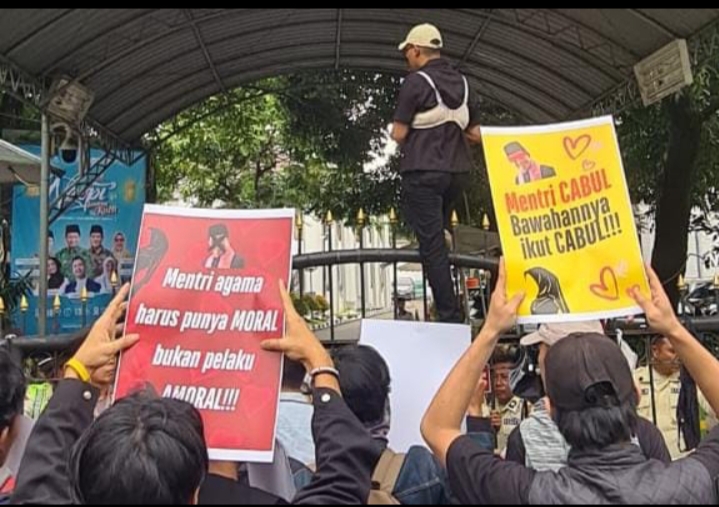 Aksi gabungan elemen massa ini berlangsung damai dan semangat di tengah terik matahari sekitar pintu gerbang Kemenag RI. Dimana para peserta aksi mengungkap berbagai dugaan serius, mulai dari dugaan pelecehan verbal, dugaan perselingkuhan, hingga indikasi kuat praktik korupsi, kolusi, dan nepotisme (KKN) di lingkungan Kemenag RI.