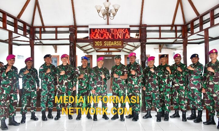 Dansatgas Pamtas Mobile RI-PNG Yonif 7 Marinir/Gobang Letnan Kolonel Marinir Alex Zulkarnain,S.E.,M.Tr.Opsla beserta perwira staf dan jajaran satgas laksanakan kunjungan ke Lanal Timika pada Kamis(06/06/2024).
