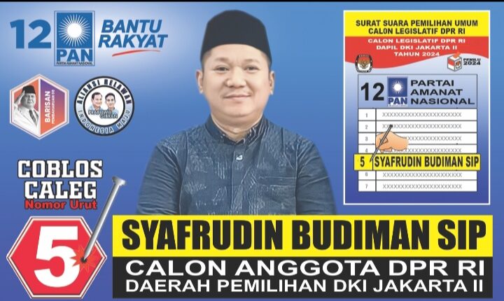 Mi-Net.com – Politisi muda Syafrudin Budiman SIP yakin serta optimis bisa tembus dan lenggang masuk Senayan. Caleg DPR RI Dapil DKI Jakarta II Jaksel, Jakpus dan Luar Negeri Nomer Urut 5 Partai Amanat Nasional (PAN) ini dapat dukungan dari Pelaku UMKM, Koperasi dan Pedagang di Jakarta.
