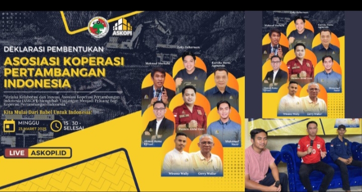 PANGKALPINANG (MI-NET) – Sejumlah tokoh pertambangan dan koperasi secara resmi mendeklarasikan pembentukan Asosiasi Koperasi Pertambangan Indonesia (ASKOPI) dalam sebuah acara yang berlangsung di Kota Pangkapinang, Bangka Belitung, Minggu (23/03/2025).