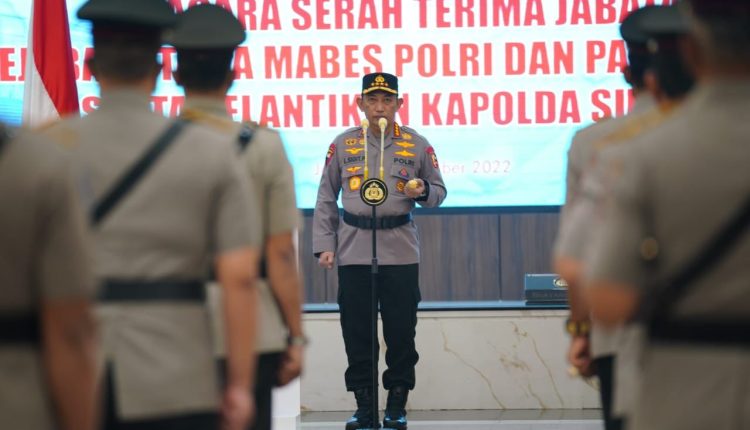 Jakarta (MIN-SMSI) – Kapolri Jenderal Listyo Sigit Prabowo memimpin Upacara Serah Terima Jabatan (Sertijab) sejumlah Perwira Tinggi (Pati) Polri di Gedung Rupatama, Jakarta Selatan, Selasa, 18 Oktober 2022. Dalam prosesi tersebut, berjumlah 16 Pati, diantaranya terdapat sembilan Kapolda baru.