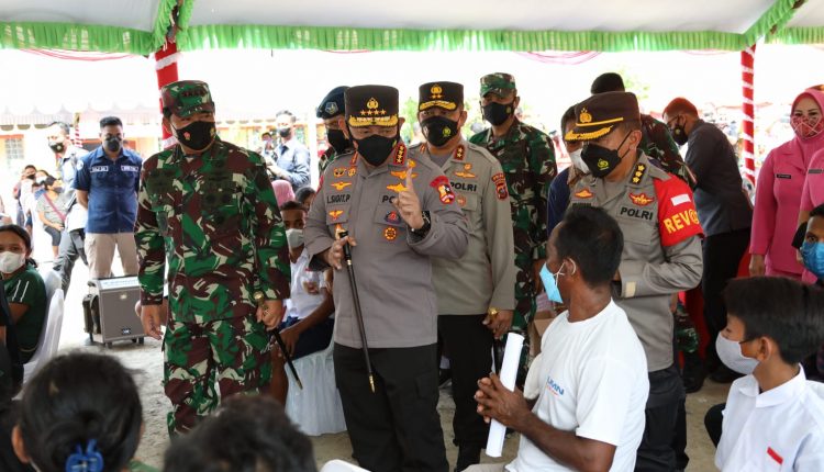 NTT (MIN) – Panglima TNI Marsekal Hadi Tjahjanto dan Kapolri Jenderal Listyo Sigit Prabowo meninjau vaksinasi massal yang dilakukan di Gereja Paroki Roh Kudus, Labuan Bajo, Manggarai Barat, Nusa Tenggara Timur (NTT), Sabtu (6/11/2021).