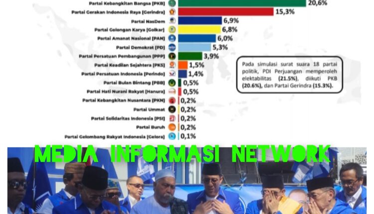 “Pada simulasi surat suara 18 partai politik, PDI Perjuangan memperoleh elektabilitas 24,4 persen), diikuti Partai Gerindra 16,7 persen, dan Partai Golkar 10,1 persen,” kata Arya.