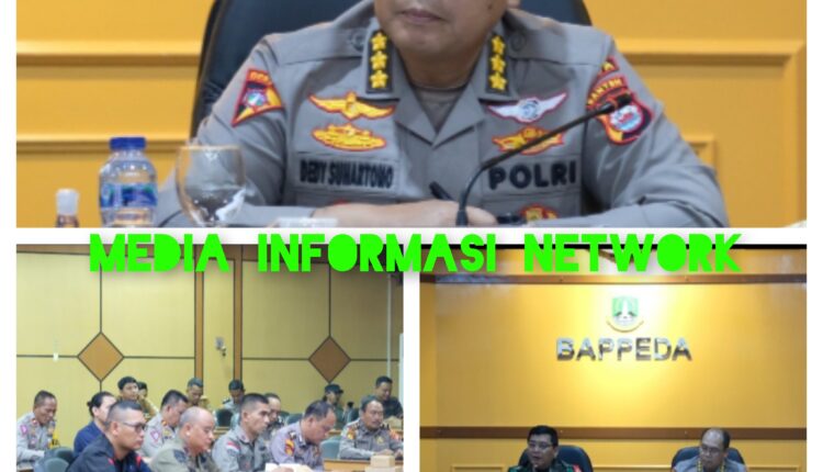 Serang (MIN) – Polda Banten bersama Korem 064 Maulana Yusuf gelar rapat koordinasi dalam rangka kunjungan kerja Presiden RI Joko Widodo di wilayah Provinsi Banten yang dilaksanakan di ruang rapat BAPPEDA Provinsi Banten pada pada Senin (11/09/2023).