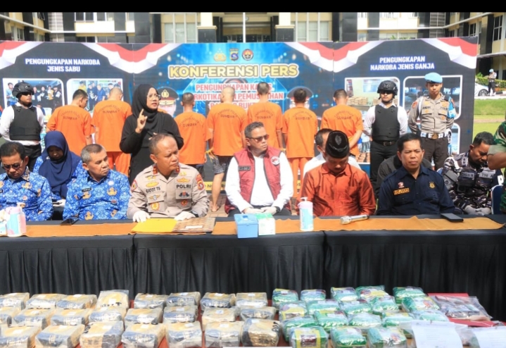 Menurutnya, dari 56 tersangka yang diamankan, 53 di antaranya laki-laki dan 3 lainnya perempuan. Barang bukti yang disita mencapai 50,31 kilogram sabu dan 49,12 kilogram ganja.