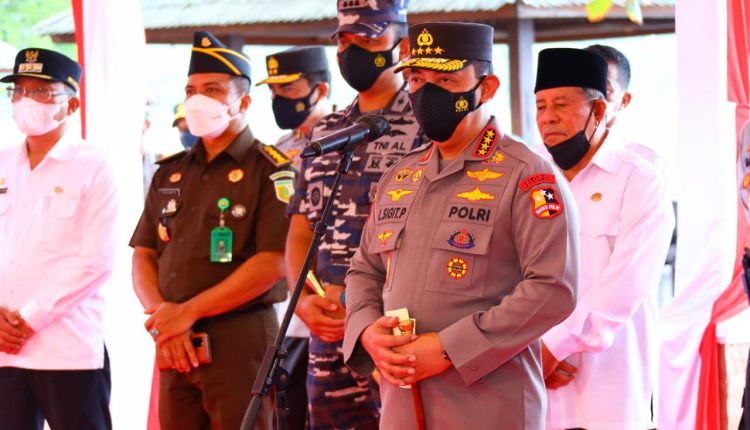Maluku Utara (MIN) – Kapolri Jenderal Listyo Sigit Prabowo meninjau akselerasi percepatan vaksinasi Covid-19 yang digelar di 34 Provinsi Indonesia dengan menghadiri secara langsung di Pantai Sulamadaha, Kota Ternate, Maluku Utara, Jumat (14/01/2022).