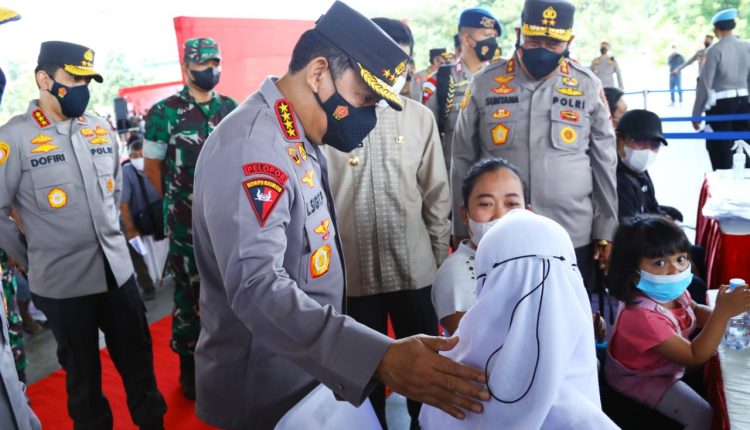 Bandung (MIN) – Kapolri Jenderal Listyo Sigit Prabowo menghadiri kegiatan akselerasi vaksinasi serentak di Gedung Dome Bale Rame, Kabupaten Bandung, Jawa Barat, Jumat (7/1/2022). Percepatan tersebut juga digelar seluruh wilayah Indonesia.