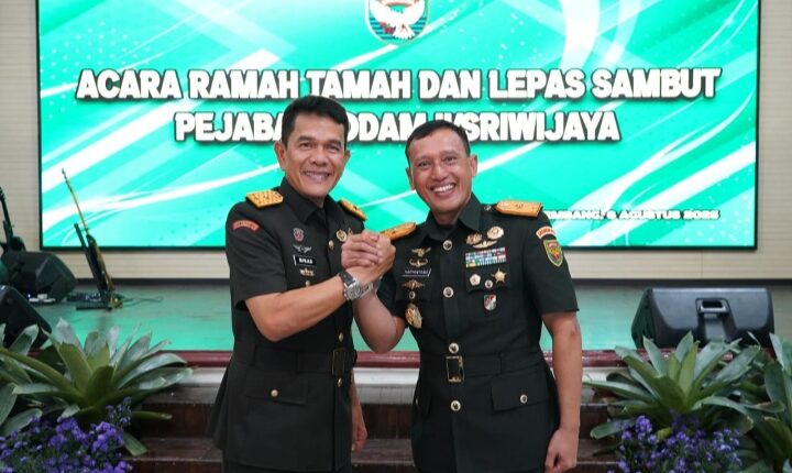 Palembang (MI-NET) – Pangdam II/Sriwijaya (Swj) Mayjen TNI Ujang Darwis, M.D.A., memimpin langsung upacara Serah Terima Jabatan (Sertijab) Komandan Korem (Danrem) 043/Garuda Hitam (Gatam) dari Brigjen TNI Rikas Hidayatullah, S.E., M.M., kepada pejabat baru Brigjen TNI Haryantana, S.H. Upacara digelar khidmat di Gedung Sudirman, Makodam II/Swj, Palembang, Sumatera Selatan.