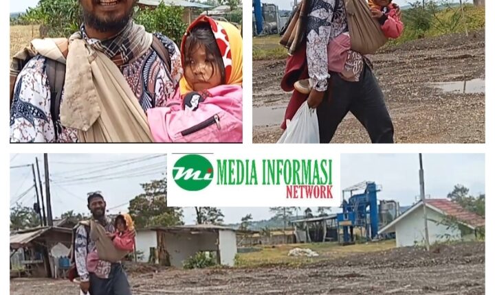 Lampung (MI-NET) – Bercita-cita kuat ingin naik Haji, Kumaedi (41) warga Cirebon rela berjalan kaki menelusuri jalan lintas Sumatera menuju ke Aceh dengan menggendong anak perempuannya yang masih kecil.
