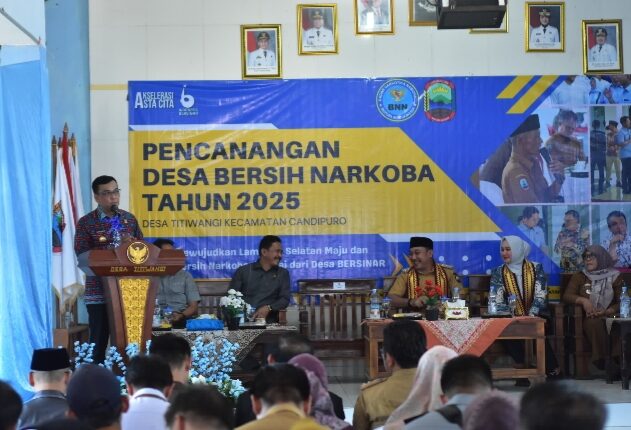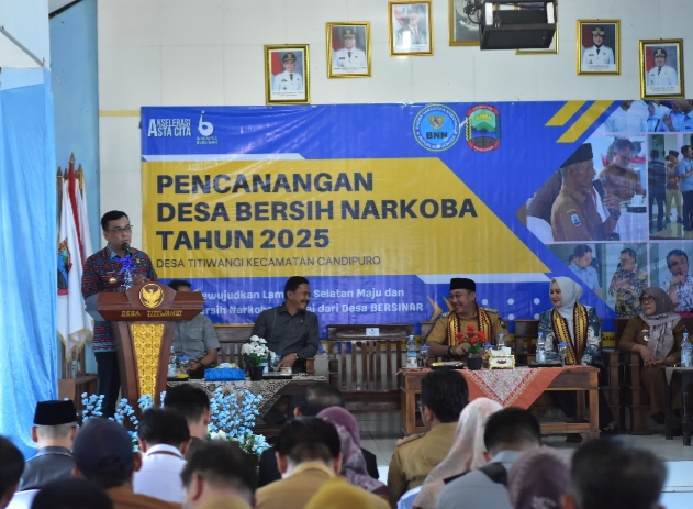 Lampung Selatan (MI-NET) – Wakil Bupati Lampung Selatan, Saiful Anwar, secara resmi melakukan pencanangan dan deklarasi Desa bersih narkoba (Bersinar) disaksikan dan didampingi oleh Kepala BNNK Lampung Selatan AKBP Rahmad Hidayat.SE.MM., yang berlangsung di Balai Desa Titiwangi, Kecamatan Candipuro Kabupaten Lampung Selatan, Selasa, 27 Mei 2025.