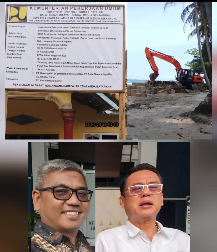 “Kami meminta Balai Besar Wilayah Sungai (BBWS) Mesuji-Sekampung dan Pemkab Lampung Selatan untuk melakukan pengawasan ketat. Jangan sampai kontraktor dari luar daerah hanya numpang proyek lalu rakyat yang jadi korban karena mutu pekerjaan rendah. Kalau ada penyimpangan, kami tidak segan melaporkan ke aparat penegak hukum.”