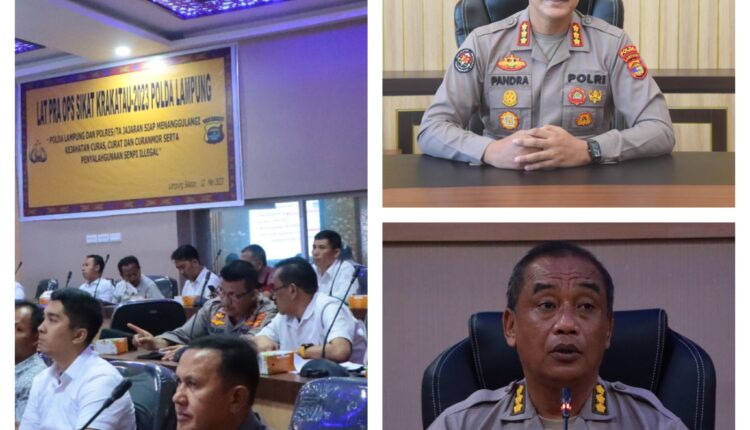 ” Polda Lampung beserta jajaran kembali melaksanakan operasi Kepolisian Kewilayahan Polda dan Polres jajaran dengan sandi OPS Sikat Krakatau 2023, ” kata Kapolda Lampu Irjen Pol Helmi Santika melalui Karo Ops Polda Lampung Kombes Pol Roemtaat.