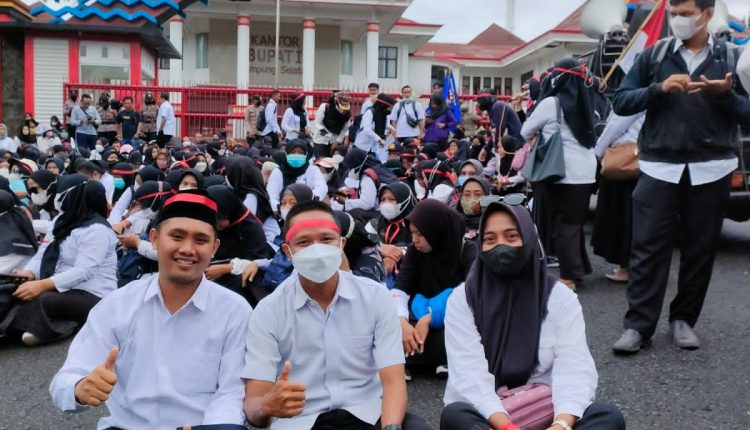 Lampung Selatan (MIN) – Ratusan Guru Lulus Passing Grade Pegawai Pemerintah dengan Perjanjian Kerja (GLPG – PPPK) Kabupaten Lampung Selatan Tahun 2021 melakukan aksi damai di depan Kantor Bupati, pada Kamis (17/11/2022).