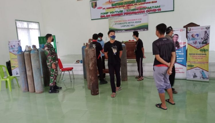 Lampung Selatan (MediaInformasiNetwork.com) – Pembagian bantuan Oksigen Gratis sebanyak 30 tabung dengan berat pertabung 50 kg kepada masyarakat yang terpapar Covid 19, di distribusikan oleh PT. Konvertan Mitra Abadi dan PT. Lampung Gas, pada Jum’at pagi (14/08/2021) bertempat di Aula Mayonif 143/TWEJ Desa Candimas Kecamatan Natar Kabupaten Lampung Selatan, berjalan sesuai dengan Protokol Kesehatan.