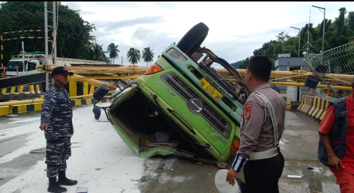Beruntung, dalam kejadian tersebut tidak ada korban jiwa, meskipun truk yang terguling menutup jalur kendaraan. Pihak Kepolisian kini tengah melakukan upaya untuk mengevakuasi badan truk yang menghalangi jalur kendaraan di sekitar area pelabuhan.