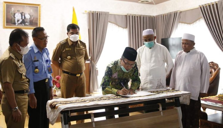 Dalam sambutannya perwakilan Panitia Lokal NU Lampung Tengah Wagimin mengucapkan terima kasih dan mengapresiasi langkah yang di Lakukan Bupati Musa Ahmad atas peran serta pemerintah Kabupaten Lampung Tengah dan beberapa perusahaan dalam upaya mensukseskan Muktamar NU ke – 34 yang di pusatkan di Kabupaten Lampung Tengah.