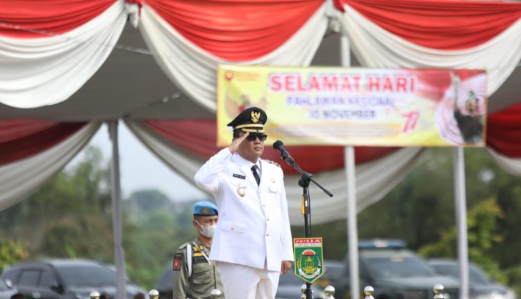 Lampung Tengah (MIN-SMSI) – Wakil Bupati Lampung Tengah Dr. Ardito Wijaya Pimpin Apel Upacara peringatan Hari Pahlawan ke-77 di lapangan Merdeka Gunung Sugih Kabupaten setempat, Kamis (10/11/2022).