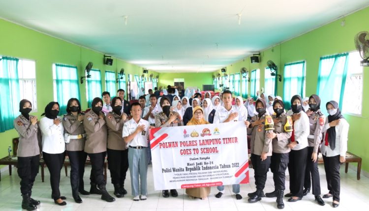 Lampung Timur– Menyambut hari jadi ke-74 Polisi Wanita (Polwan), Polwan Polres Lampung Timur Polda Lampung memberikan penyuluhan di SMA N 1 Way Jepara, Senin (8/8/2022).