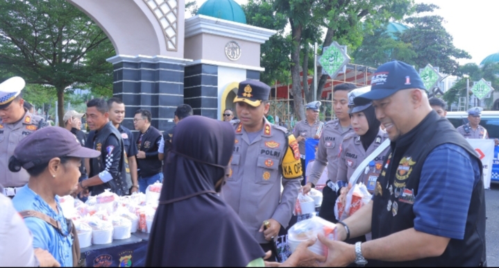 Metro (MI-NET) – Dalam semangat berbagi di bulan suci Ramadan, Kapolres Metro, AKBP Heri Sulistyo Nugroho, S.I.K., M.I.K, didampingi Kasat Lantas Polres Metro, bersama HDCI (Harley-Davidson Club Indonesia) Kota Metro menggelar kegiatan sosial dengan membagikan takjil gratis kepada masyarakat di simpang tiga Masjid Taqwa Kota Metro, pada Sabtu, (15/03/25) sore.