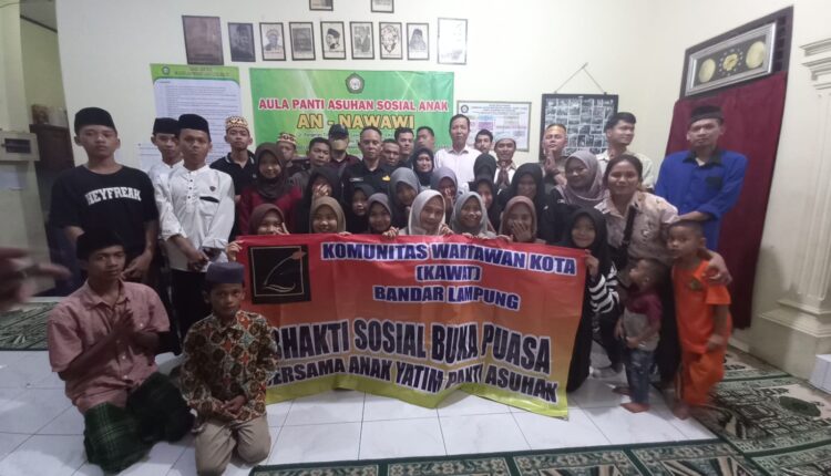 MEDIA INFORMASI NETWORK.COM – Komunitas Wartawan Kota (Kawat) Bandar Lampung menggelar buka bersama dan bakti sosial bersama anak yatim Panti Asuhan An-Nawawi di Kelurahan Sukabumi Kecamatan Sukabumi, Bandar Lampung, pada Jumat (22/03/2024) petang.