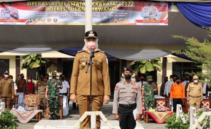 “Dalam kesempatan yg luar biasa ini saya mengajak kepada seluruh peserta upacara dan rakyat Tulang bawang untuk memutus mata rantai Covid -19 serta meningkatkan kedisiplinan masyarakat Tulang bawang dalam berlalu lintas sehingga tercipta Kamseltibcarlantas yang aman dan nyaman menjelang Hari raya idul fitri Tahun 2022,†Ujar Bupati Winarti yg bertindak selaku Pembina Upacara.