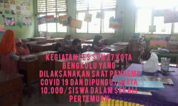 Terkait kegiatan les yang di lakukan oleh SDN 77 Kota Bengkulu sangat bertentangan dengan surat edaran wali kota nomor 360/22/BPBD/2021 “ tentang pembatasan kegiatan masyarakat ( PPKM ) dan penghentian kegiatan yg bersifat keramaian atau kerumunan “. Dimana salah satunya bunyi surat edaran tersebut tercantum pada Poin 3 “ ( Kegiatan belajar dan mengajar PAUD/TK, SD ,SMP , SMA ,/sederajat dan perguruan tinggi di wilayah kota Bengkulu di lakukan secara DARING atau ONLINE “).