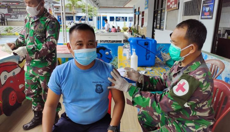 TULANG BAWANG – Pegawai dan Warga Binaan Pemasarakatan Rutan Kelas IIB terima Vaksinasi Covid -19 Dosis kedua. Vaksinasi dilakukan di Aula Rumah Tahanan Negara Kelas IIB Menggala bekerja sama dengan Kodim 0426 dan Dinas Kesehatan Tulang Bawang, Jum’at (13/08/21).